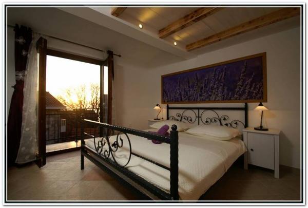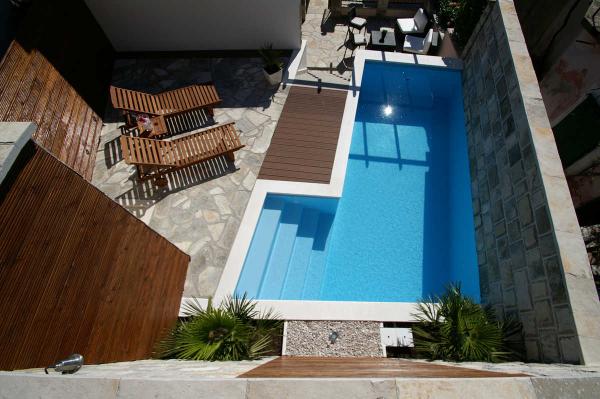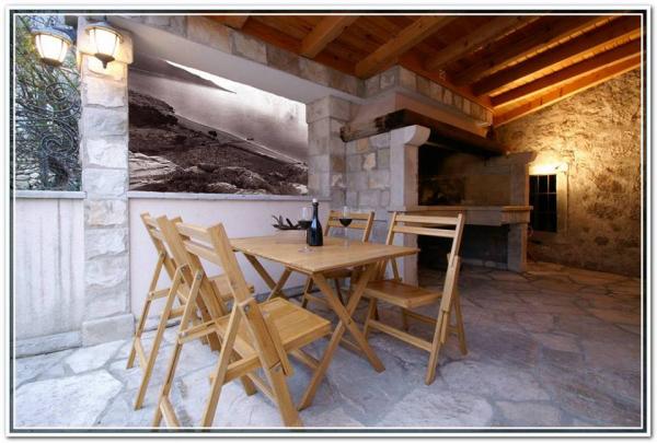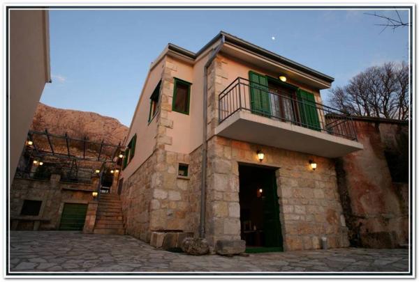 Kompletno opremljena vila. Spoj tradicijske gradnje, kamen i moderno uređen interijera. Vila se nalazi na brežuljku u podnožju planine Biokovo. Ima prekrasan pogled na more (700m zračne linije od mora). Do vile vodi uređeni put. Vila ima moderno opremljenu kuhinju (s perilicom za suđe), suvremeno kupatilo, 2 spavaće sobe i dnevni boravak sa kaminom (moguće soba za 2 osobe). Uz veliku terasu, uz vilu je bazen 5 x 4 m i uređen okoliš (ležajke, vanjski tuš).
