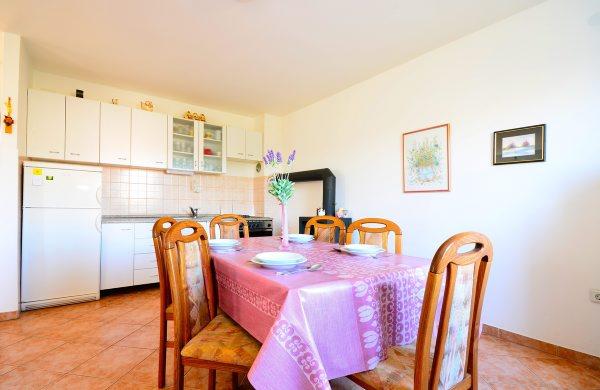 Kuća za odmor se nalazi u mirnom mjestu, u netaknutoj prirodi, prekrasnom krajoliku, 150 metara udaljena od mora. Ima nekoliko plaža, bez gužvi, u borovoj šumi ili po izboru duž obale, a sve u blizini kuće. Nudimo potpuno opremljenu kuhinju, TV-satelit, internet, klimu, parkiralište u dvorištu, roštilj, balkoni i terasa uz kuhinju. U kući su na raspolaganju kuhinja s dnevnim boravkom i blagovaonica, četiri spavaće sobe (po dva kreveta u svakoj sobi i po dva pomoćna kreveta), te dvije kupaonice sa dva WC-a, mašinom za pranje rublja i mogućnost korištenja podruma. Tri velike trgovine, mesnica, pekara, pošta, tržnica, restorani i ambulanta udaljeni su oko 800 metara od kuće i nalaze se u centru Ugljana. Mjesto Preko je trajektna luka iz koje polaze i dolaze linije koje povezuju otok sa Zadrom, koji je poznati povijesni, kulturni, sveučilišni,grad. Vožnja trajektom iz centra Zadra traje cca 25 minuta. Trajekt vozi svakih 45 minuta (napomena: nema velikih gužvi).