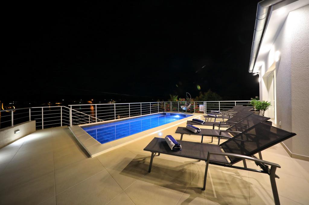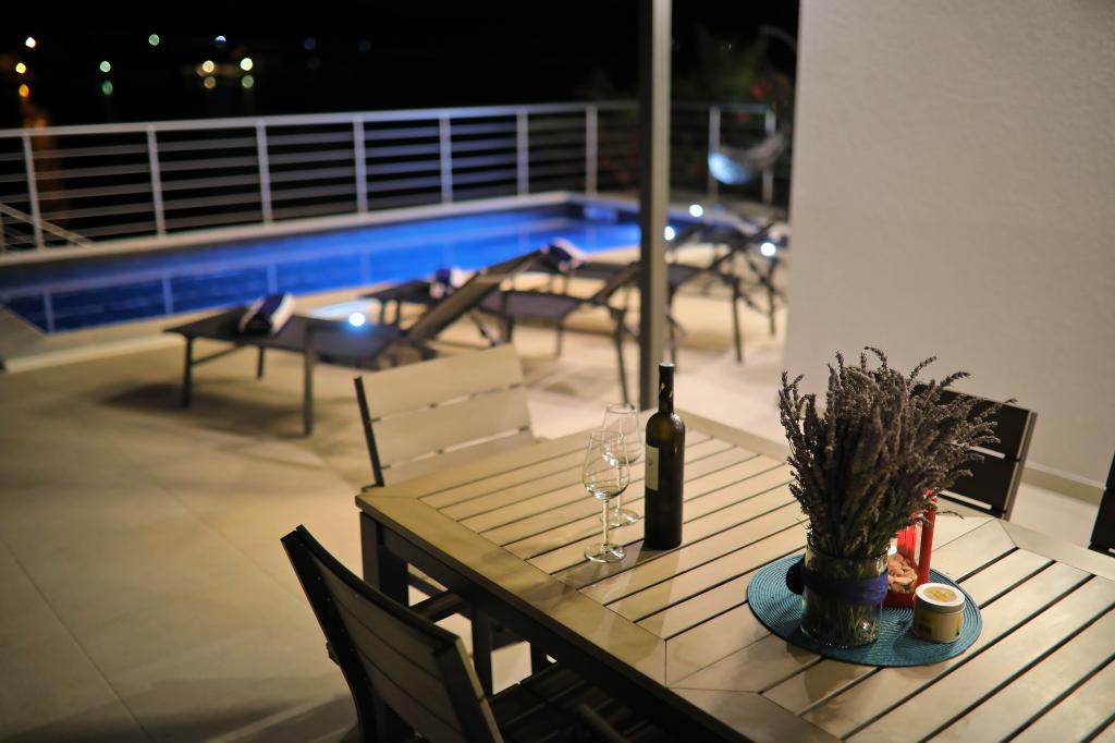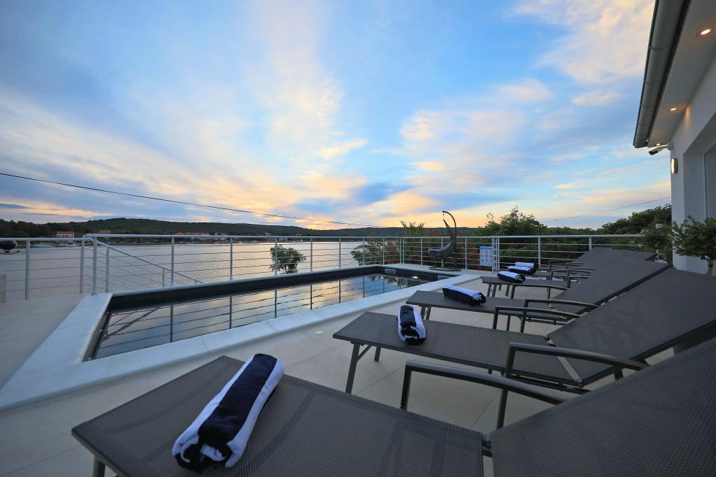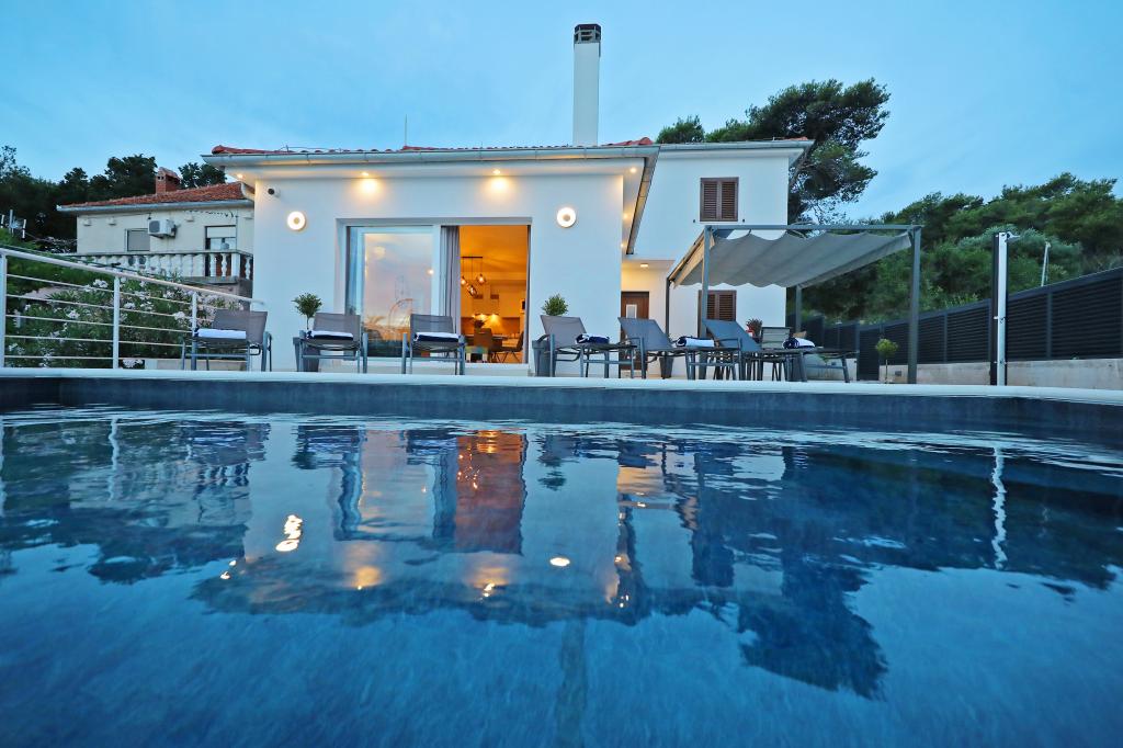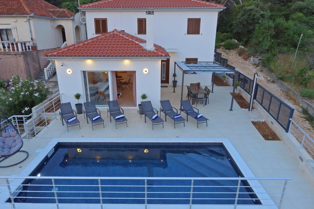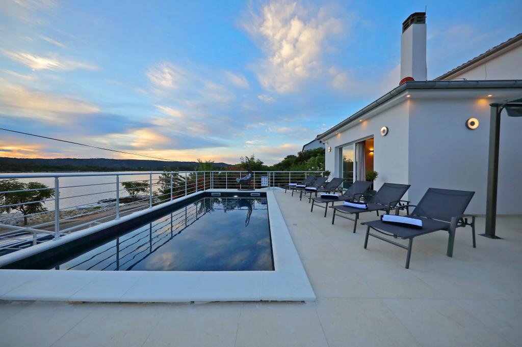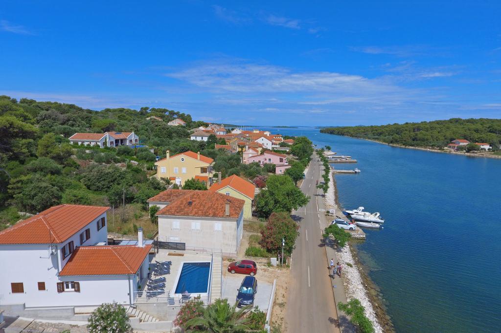 Potpuno nova, moderna vila sa bazenom smještena na zapadnom dijelu Dugog otoka udaljena 3km od plaže Sakarun i 3km od svjetionika Veli rat. Bazen je dimenzija 6, 8x3,2m. Vrlo komforna vila sa tri spavaća sobe, tri kupaonice, dnevni boravak, kuhinja, blagovaonica, terasa i vanjski roštilj. Kompletna posteljine, ručnici za kupaonici i posebno za plažu. Vez za plovilo do 6m dužine osiguran 20m od kuća. Za veća plovila marina je udaljena 700m od kuće. Uz kuću je 6 bicikli za korištenje kao i 1 SUP.