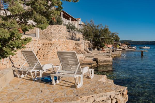 Ugodna ladanjska atmosfera u tihoj uvali pored malog mjesta Vinišća. Villa Stella je idealno mjesto za Vaš odmor. Villa se iznajmljuje u cjelini sa okućnicom. Villa je površine cca 80m2. Okućnica ima cca 250m2, od čega dva natkrivena dijela površine cca 35m2. U suterenu okućnice stolovi i stolice/klupe se nalaze pod sjenicama, pored kojih je kamin, te dodatni vanjski wc sa tušem. Unutar Ville, u suterenu, se nalazi i sama kuhinja, namjerno izdvojena od prvog kata (zbog mirisa od kuhanja) gdje su sobe. Na prvom katu se nalaze 3 sobe: 1 x dvokrevetna soba, 1 x jednokrevetna soba, 1 x dvokrevetna soba u kojoj je još jedna sofa). Ukupni kapacitet je 5 1. Iz jedne sobe se izlazi na terasu površine cca 25m2, koja nije nadsjenjena, pa je to prostor ugodan za večernji boravak. Villa je udaljena oko 50m od mora. Na moru imate svoj privatni kameni mulet, sa malom šljunčanom plažom. Villa ima privatni parking.