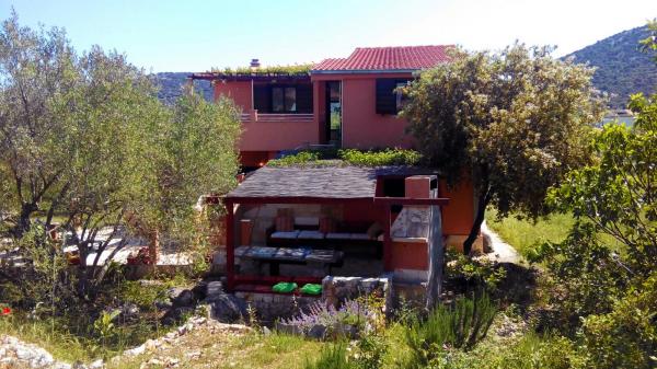 Novo sagrađena kuća s prekrasnim verandama, balkonima, teracama i roštiljem nalazi se u centru Vinišća, udaljena od mora 80 metara, sastoji se od dva aprtmana 53 m2 i 63 m2 a iznajmljuje se kao cijelina (kuća za odmor) za 8 osoba. Najbliži susjed udaljen je 40 m tako da je privatnost zagarantirana.