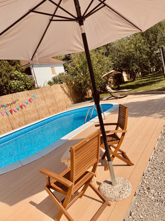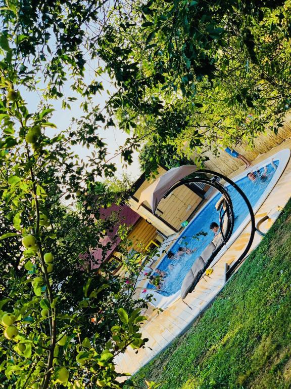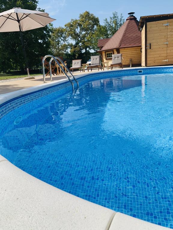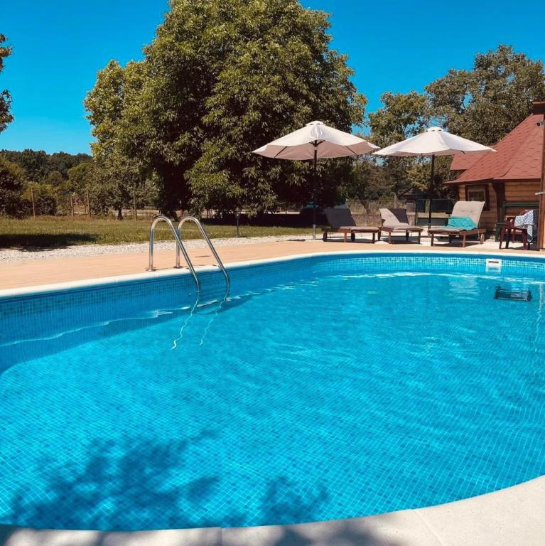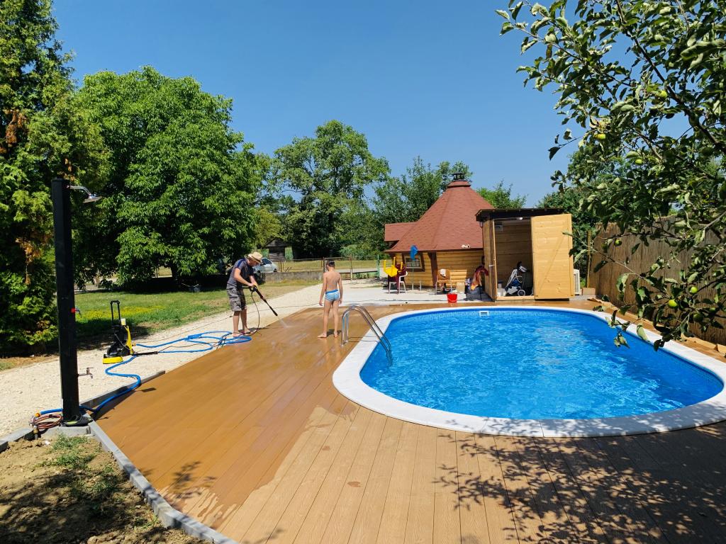 Kompletno i suvremeno opremljena kuća za odmor s 4 zvjezdice u vikend naselju, potpuno u prirodi, tik do rijeke Bosut okružena šumom. Objekt ima vanjski bazen 8x5 m, spa wellness zonu: jacuzzi i finsku saunu, ograđeno dvorište 1500 m2, kućicu na drvetu za spavanje te kolibu s Ofyr grillom. Za boravak max 6 osoba. Do herojskog grada Vukovara 20 km, do Baranje 40 km.