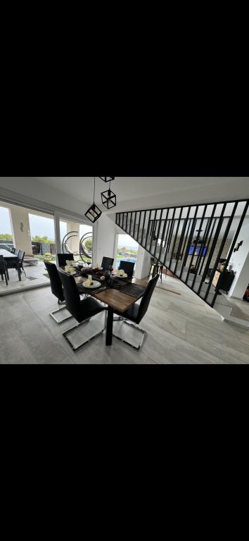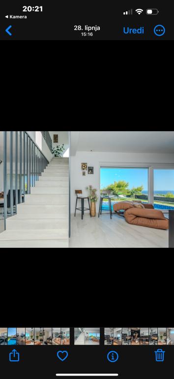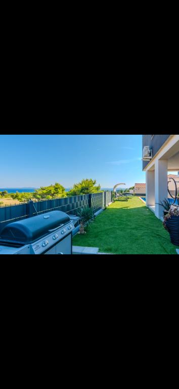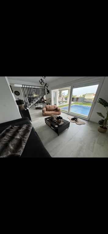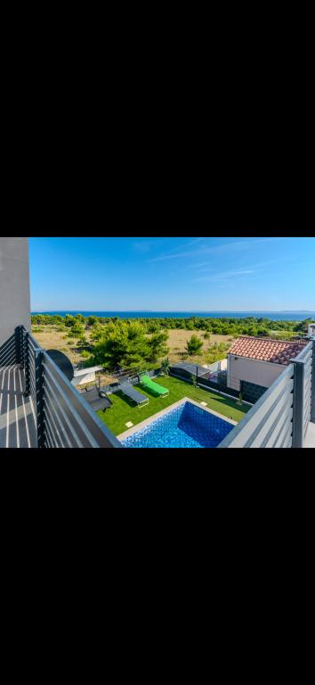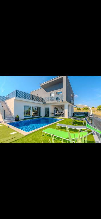 Kompletno i suvremeno opremljena vila sa bazenom. Pet minuta voznje od centra grada. Bazen je 6 x 4.5 metara. Velika nadkrivena terasa, jedna velika nepokrivena terasa. Pogled na more i prekrasan Velebit . Veliki ograđeni parking kod vile. Moderne ležaljke.