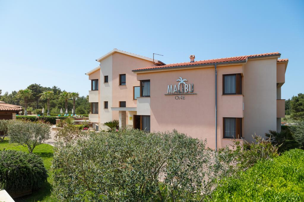 Malibu One je luksuzni resort koji se smjestio na osami u mediteranskoj borovoj šumi nedaleko od mora te koji se prostire na gotovo 5 000 metara kvadratnih površine. Onima koji se odluče na odmor u ovoj prekrasnoj villi na raspolaganju stoji 12-metarski bazen uz još mnogo sadržaja koji će odmor njenog posjetitelja učiniti nezaboravnim. Villa se sastoji od 6 novouređenih apartmana – 4 dvosobna apartmana, te 2 studio apartmana.