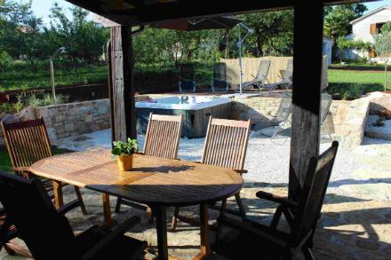 Potpuno opremljena vila s jacuzzijem u blizini Poreča, 5 km od Višnjana. Osim jacuzzija u cijenu je uključeno i korištenje 4 bicikle za odrasle osobe, ali i za djecu od 4-8 godina. Osim toga u ponudi je i quad, te legendaran Renault 4. Vani vas očekuje i prekrasna velika terasa s ljetnom kuhinjom i roštiljem, te sunčalište s udobnim drvenim ležaljkama. Na raspolaganju vam je i povrtnjak u kojem je posađeno sezonsko povrće poput rajčice, blitve, mrkve, kupusa, kelja, peršina, salate, radića, a tu je i aromatično bilje poput ružmarina, kadulje, lavande, lovora...a iz našeg voćnjaka slobodno se možete poslužiti sezonskim voćem (trešnjama, šljivama, breskvama). Dnevne prostorije (kuhinja, blagavaona i dnevni boravak s kaminom) i WC nalaze se u prizemlju, dok se (2) spavaće sobe i kupatilo nalaze na katu. Kuhinja je osim standardnom opremom dodatno opremljena perilicom, hladnjakom sa zamrzivačem, tosterom, mikrovalnom, mikserom, shake-rom, kuhalom za kavu, kuhalom za vodu.