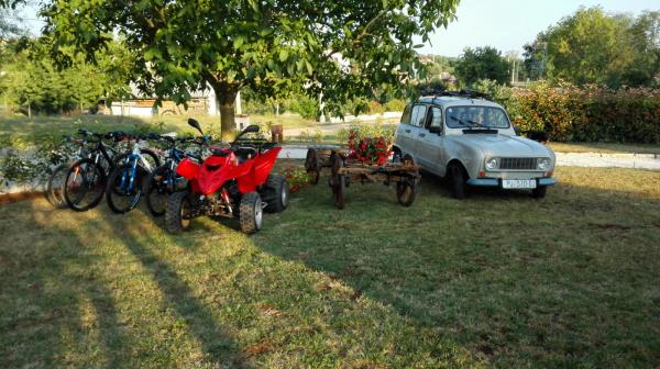 Turistička pristojba je uključena u cijenu.Za vožnju pitoresknim istarskim seoskim puteljcima tu su quad i legendarni Renault 4 (popularno zvana četvorka). Očekuje vas i poneko iznenađenje, ovisno o godišnjem dobu, kao sezonske gljive, voće i povrće iz vlastite eko proizvodnje, kesteni, šparoge, domaće vino... Vanjski jacuzzi sa romantičnom noćnom rasvjetom i ugodnim pogledom na voćnjak i vrt opustiti će vaše tijelo i um. Tu je i prekrasna drvena vrtna garnitura ispod velike natkrivene terase s ljetnom kuhinjom u kojoj ćete moći pripremiti ukusno jelo za blagovanje na svježem zraku. Djeca će zasigurno uživati na trampolinu dok se vi opuštate u rustikalnoj ljuljačci. U hladnijim mjesecima pucketanje vatre iz kamina stvoriti će opuštajuću romantičnu atmosferu.