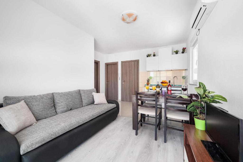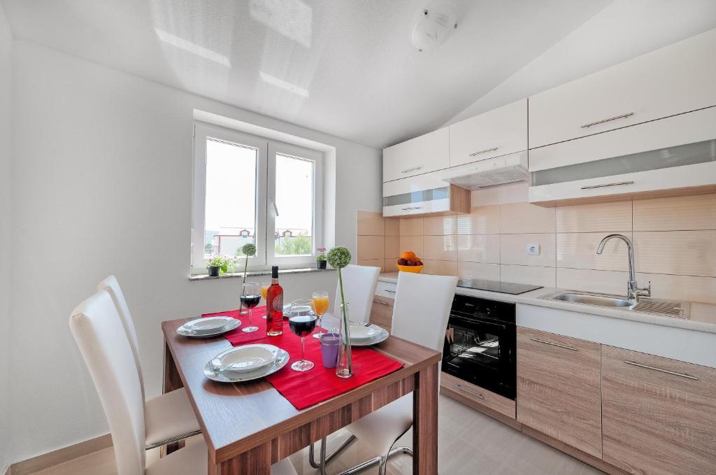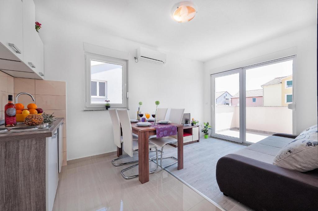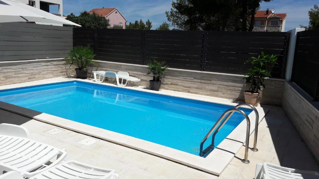 Kompletno i suvremeno opremljena vila koja se sastoji od tri zasebna apartmana sa ukupno pet soba (dva apartmana po dvije sobe i jedan sa jednom sobom), tri kupaonice i tri kuhinje. Svi apartmani imaju vlastitu kuhinju, kupaonicu i natkrivene terase sa stolom i stolicama. Objekt posjeduje bazen u dvorištu, ležaljke, vanjski stol sa stolicama i roštilj. Objekt je idealan za tri obitelji ili za veću grupu prijatelja. Blizina mora i pogled na more, bazen, vanjski roštilj, mirno okruženje lijepo uređenih vila nudi idealan opuštajući odmor. Objekt se nalazi u blizini grada Šibenika, nacionalnih parkova Krka i Kornati.