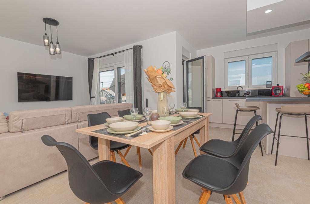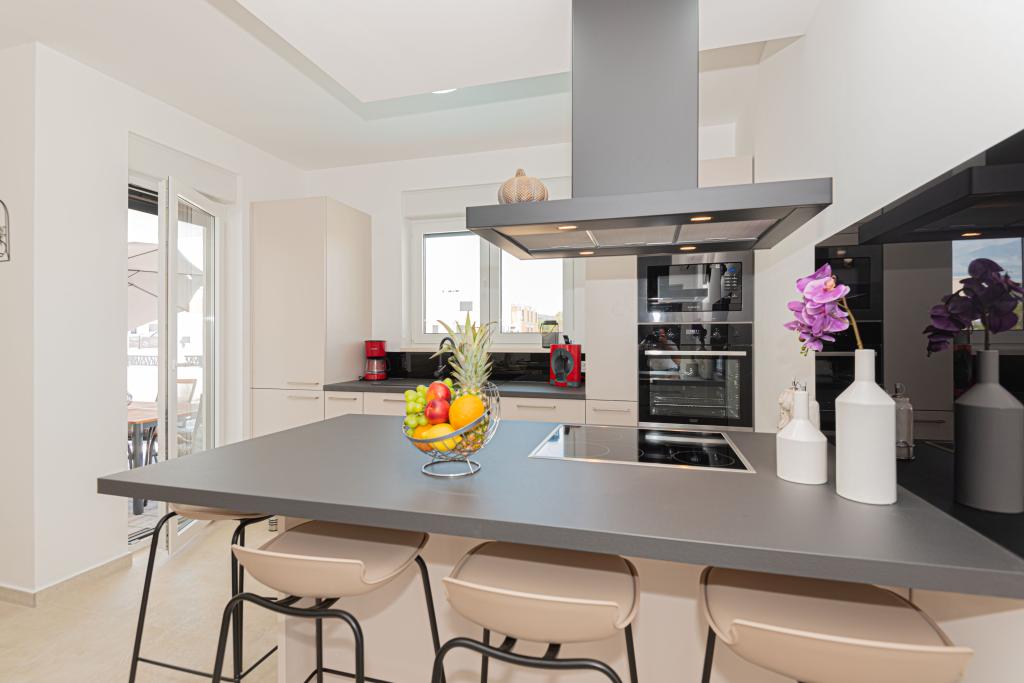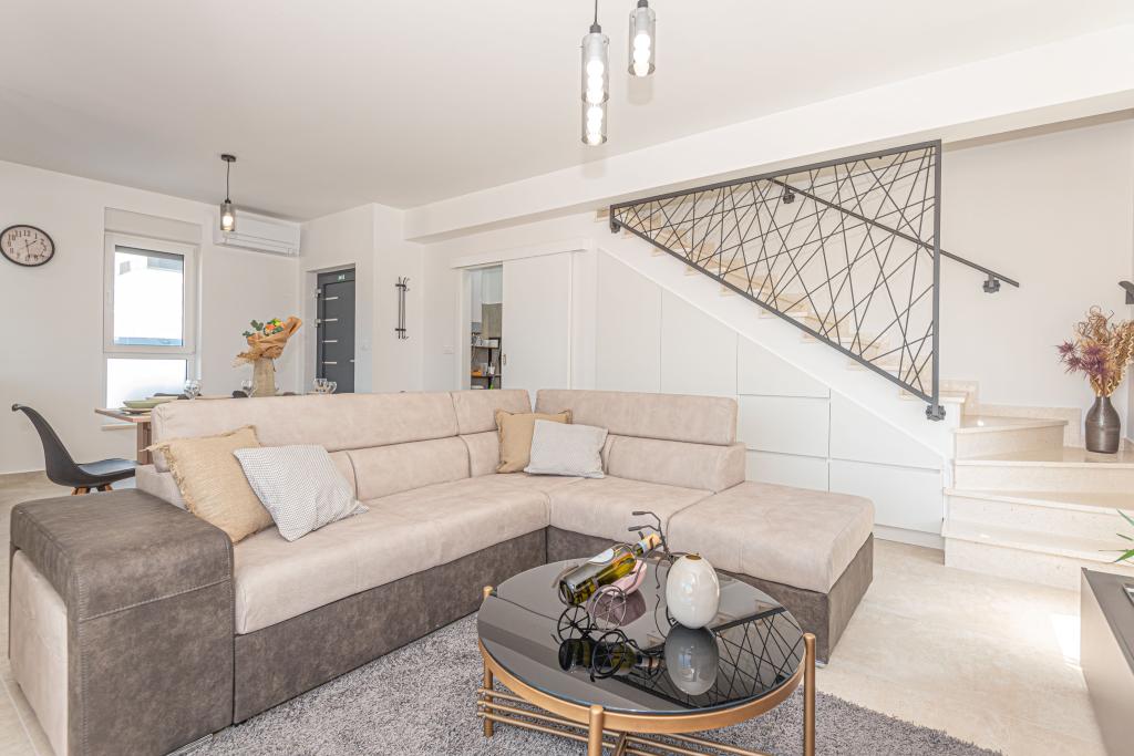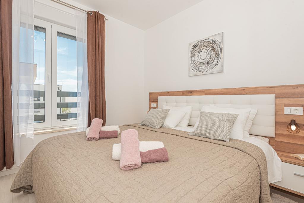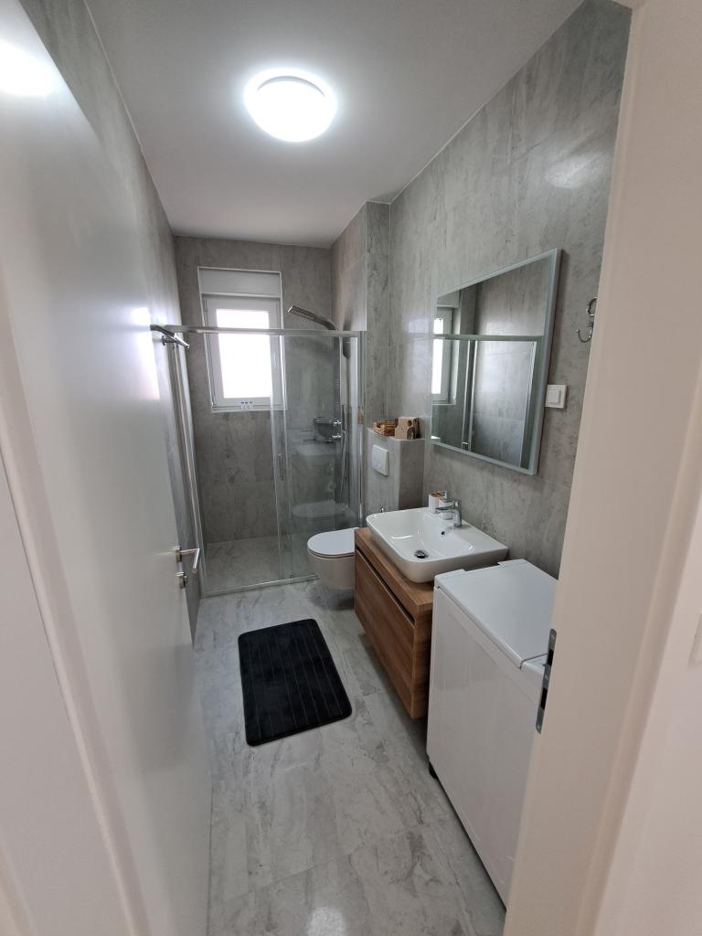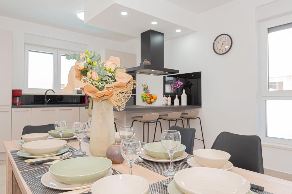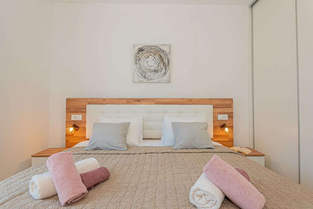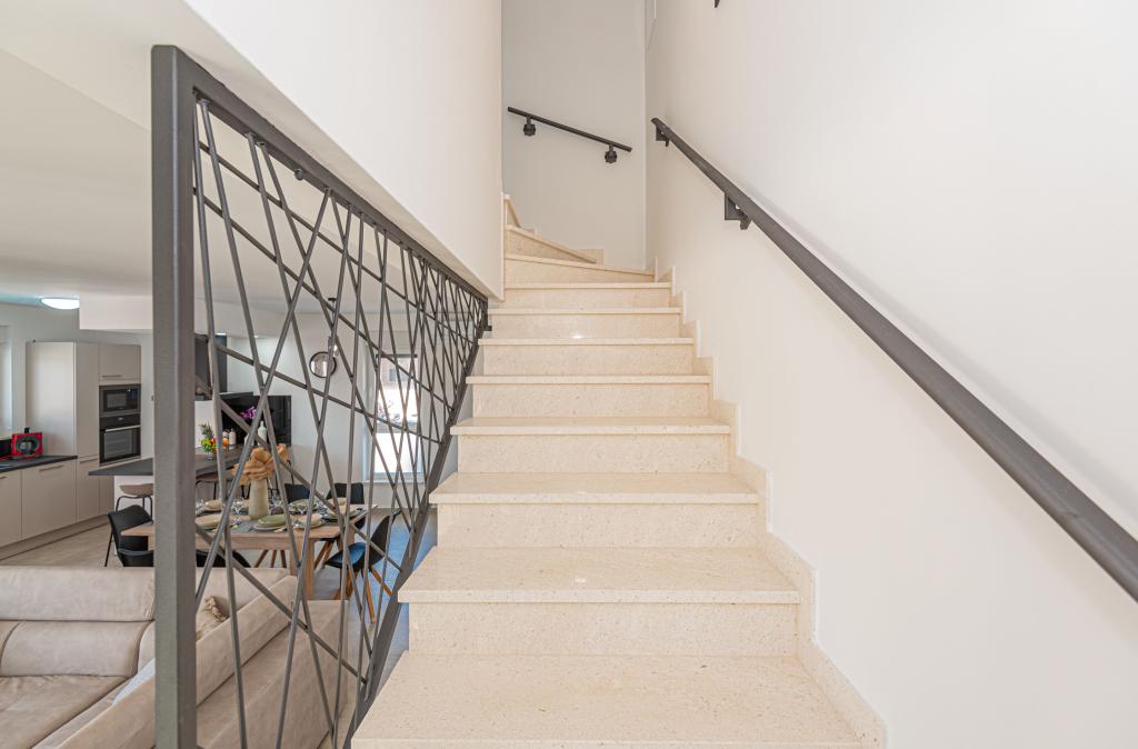 Nova, kompletno uređena vila s bazenom u mirnom kutku grada Vodica, udaljena od centra, plaže i drugih sadržaja oko 1 km ili 15 minuta laganog hoda. Vila posjeduje bazen 7x3 m i dubine 1.5 m, grijani, uz bazen se nalaze ležaljke, vrtna ljuljačka i garnitura za odmaranje u sjenici. Okućnica ima vanjski roštilj i stol za objed. Kuća na katu ima tri sobe, master soba s kupatilom i dvije sobe s kupatilom u zajedničkom hodniku. Kreveti u dvije sobe imaju dimenzije 180x200 cm, a treća soba ima odvojene krevete, 90x200 i 120x200. Sve sobe su opremljene TV -om i klima uređajem. Gosti na raspolaganju imaju posteljinu i ručnike. U prizemlju je kuhinja u potpunosti opremljena posuđem, tosterom, štapnim mikserom i električnim cjedilom za agrume, te aparatom za filter kavu. U kuhinji je perilica suđa, hladnjak i ledenica, pećnica i mikrovalna pećnica. Dnevni boravak ima kutni kauč i TV s internetom i satelitskim programom.