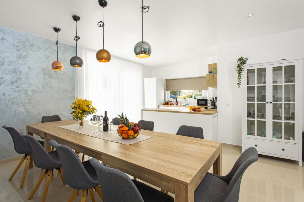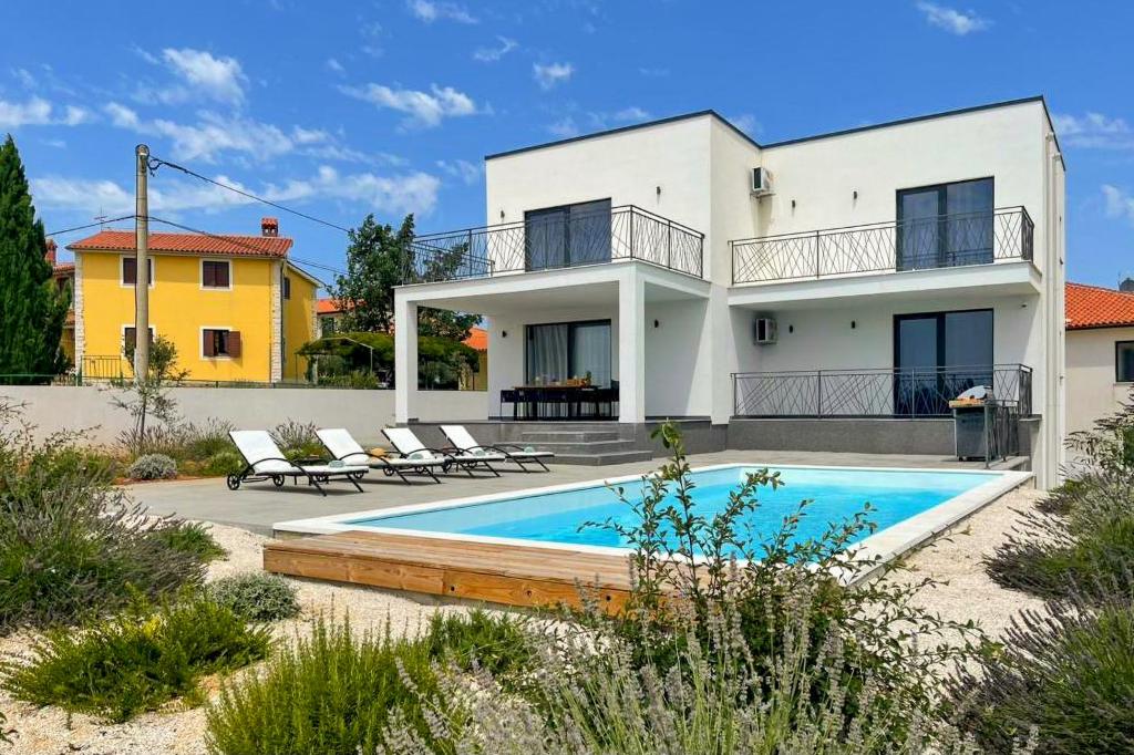 Novoizgrađena moderna Villa Angie naprosto mami da u njoj provedete opuštene i nezaboravne dane svoga odmora. Vrhunski opremljena na preko 250m² korisnog prostora,sa 5 spavaćih soba i 4 kupatila,ograđenim dvorištem veličine 400m² prepunog mediteranskog cvijeća,sa bazenom veličine 9x4m,prostranim sunčalištem sa dovoljno ležaljki i suncobrana, plinskim roštiljem i dodatnim sadržajem za zabavu vaših mališana. Smještena je na rubu mirnog seoceta,okružena livadama i šumama,sa puno pješačkih i biciklističkih staza kroz zeleni krajolik.U neposrednoj blizini ville se nalaze sportski tereni na raspolaganju za vaše sportske aktivnosti. Udaljena je desetak minuta od prvih plaža,kao i od poznatog turističkog naselja Fažana koje je polazište za posjetu nacinalnog parka Brijuni. Petnaestak minuta vožnje vas dijeli od aerodroma i turističkog središta, grada Pule sa poznatim rimskim anfiteatrom Pulskom arenom. U bližoj okolice se nalaze brojni turistički, ugostiteljski,kulturni i povijesni sadržaji...