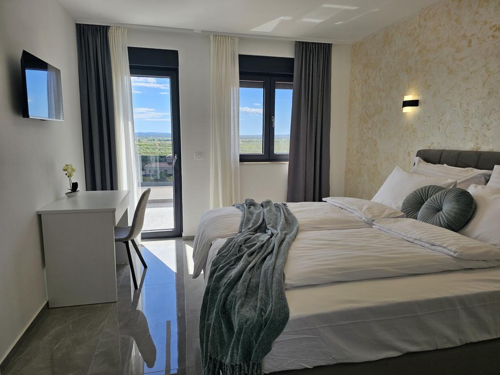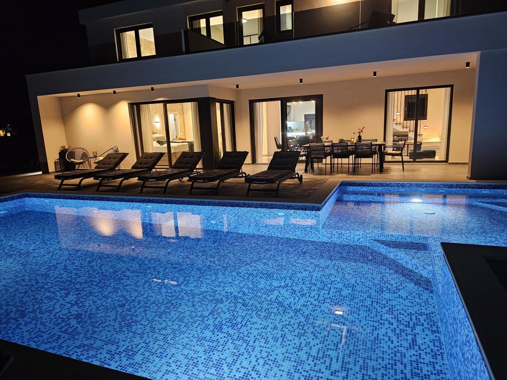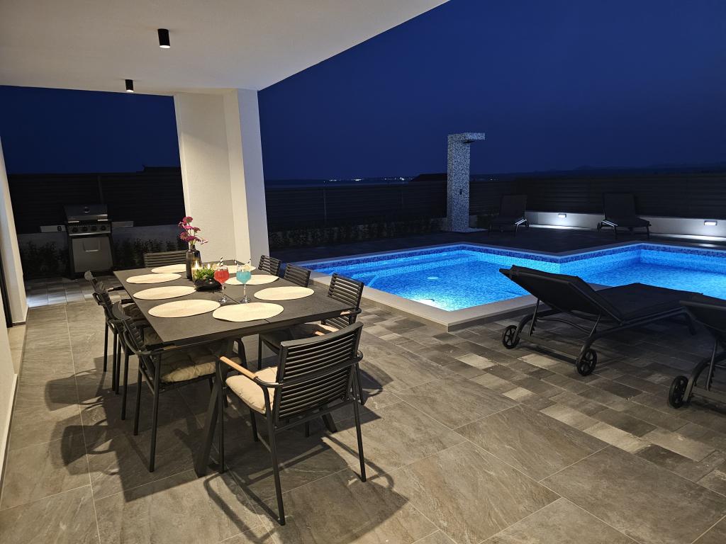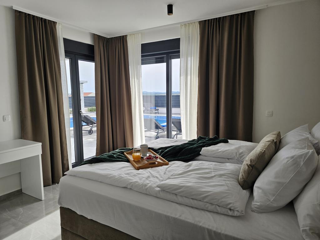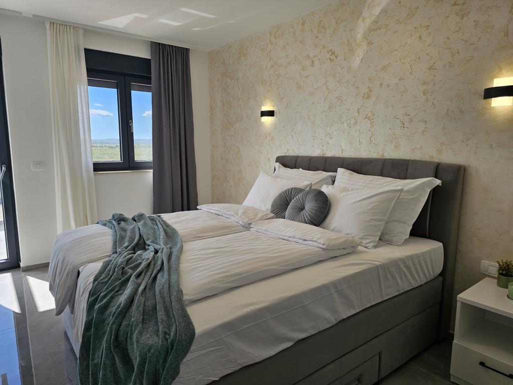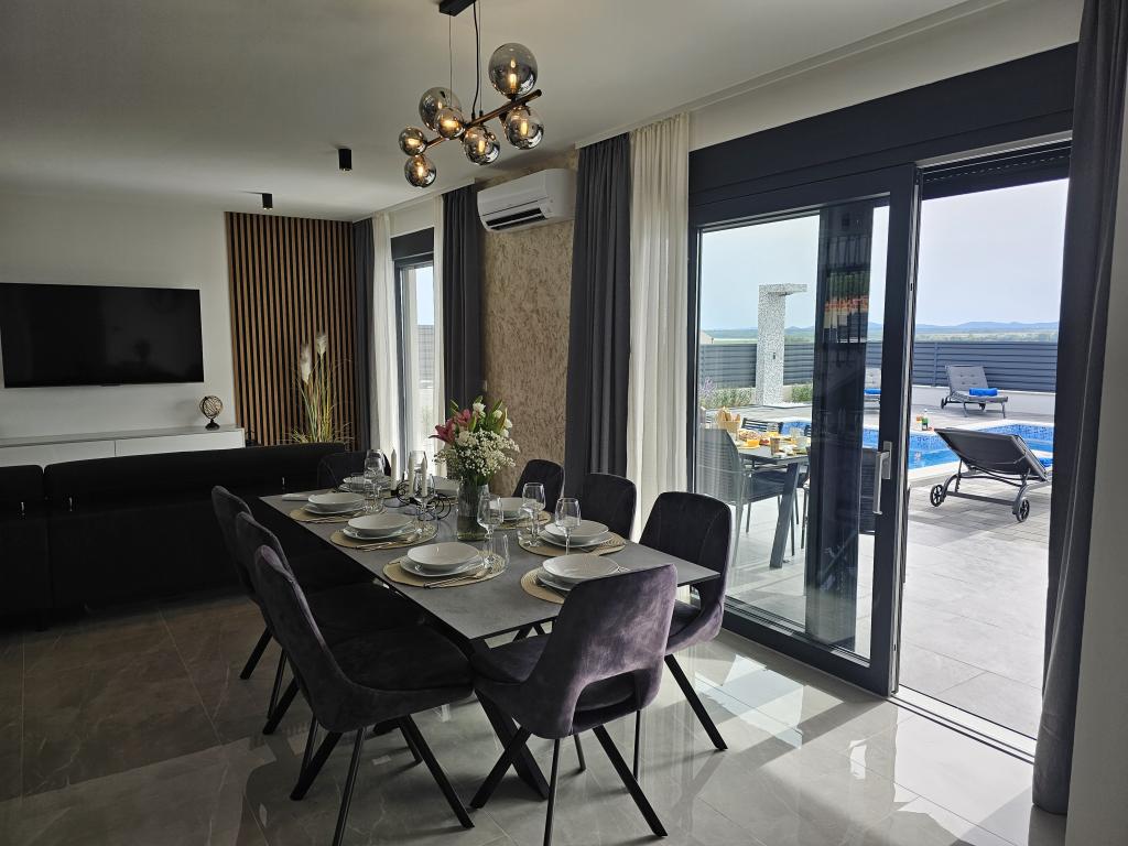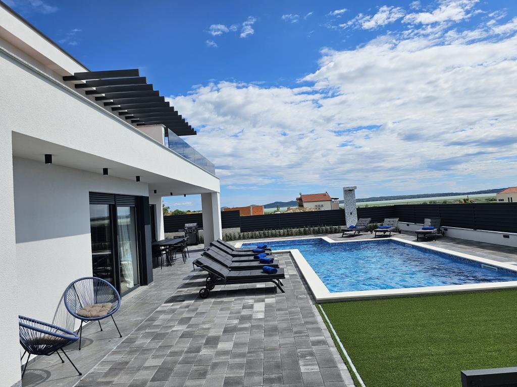 Dobrodošli u Villu Bašić. Pprekrasnu oazu mira, smještenu u mjestu Vrana kraj Pakoštana. Smještena u samom srcu parka prirode. Pruža panoramski pogled na Vransko jezero. Vanjski dio vile pruža grijani bazen s whirlpool. Svaka soba opremljena je klima uređajima i tv što pruža dodatnu udobnost tijekom vašeg boravka. Villa Bašić nudi prostrani i elegantno uređen interijer koji se prostire na dvije etaže. Ograđena parcela, vrtni namještaj. igračke za vanjski prostor. vanjski tuš. broj ležaljki 8