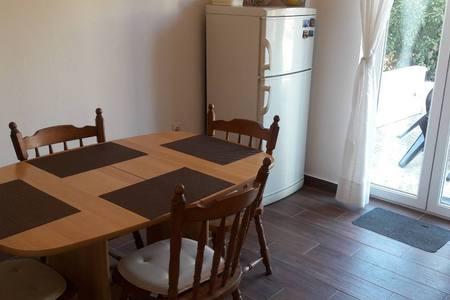 Kuca se sastoji od 2 sobe, dnevnog boravka, blagavaonice, kupatila, 2 terase I besplatnog parkinga. Terasa u vrtu daleko je od prometa I buke, savrsena za ispijanje jutarnje kave uz pijev ptica ili bezbriznu djecju igru. U blizini je robna Kuca sa trznicom, trgovinama I svim potrebnim sadrzajima.