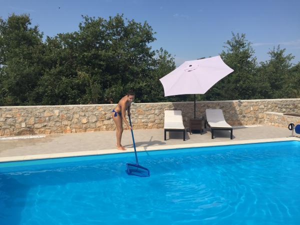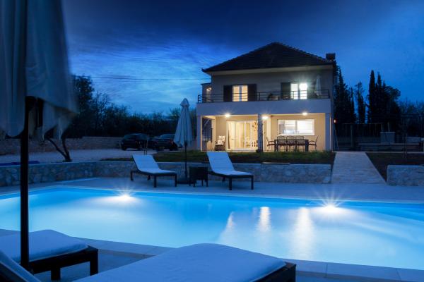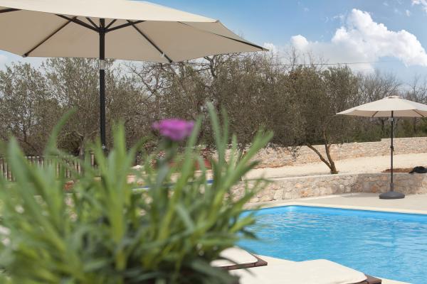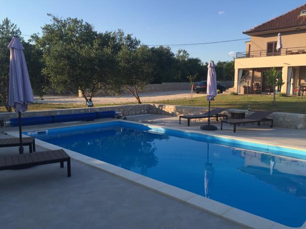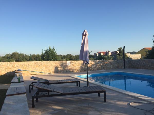 Kompletno i moderno opremljena kuča za odmor u mirnom seoskom okruženju za ugodan boravak do max. 8 osoba. Pogodno za dvije obitelji ili grupu prijatelja. Udaljena od Zadra 13 km ili desetak min. voznje i 6 km od mora (Sukošan). Kuča se sastoji od prizemlja i kata potpuno opremljenih, na okučnici od 1400 metara smjesten je vanjski bazen dimenzija 8x4x1, 5 sa sunčalistem, sadrzaj za djecu, vrtna pečenjara, parking za 3 automobila. Svi zelni ugodnog i mirnog odmora su dobrodošli