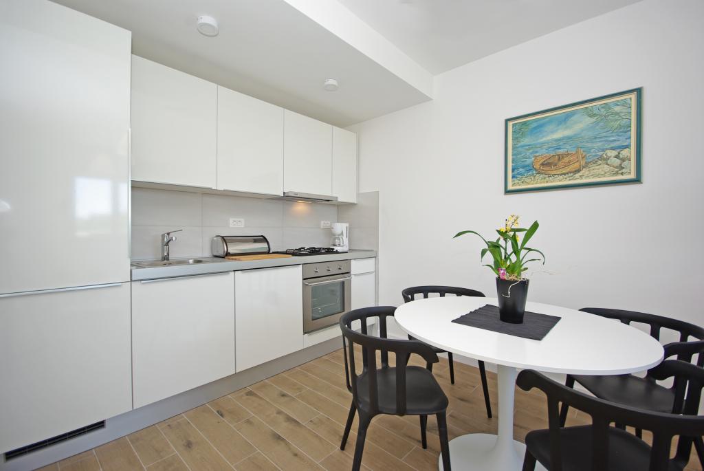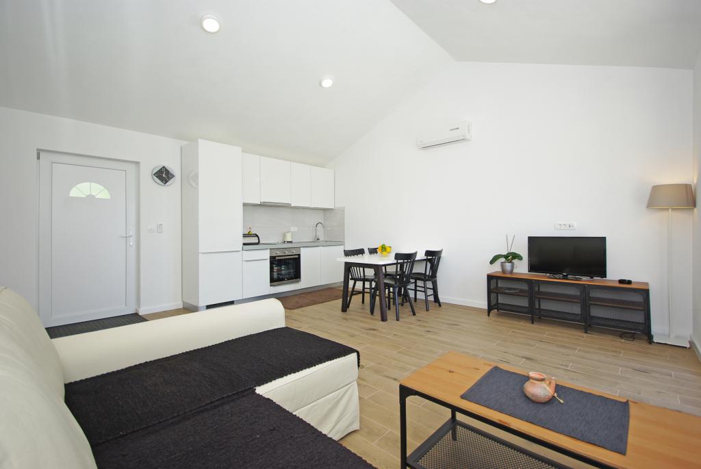Ferienhaus Dado je moderna, novo uređena kuća za odmor smještena u Zaostrogu, na Makarskoj rivijeri. Savršena je za obitelji ili grupe do 8 osoba te se nalazi samo 250 metara od plaže. Kapacitet: 8 osoba (2 kata, 2 apartmana) 2 potpuno opremljene kuhinje (štednjak, pećnica, perilica posuđa, hladnjak, aparat za kavu, kuhalo za vodu) 2 dnevna boravka/blagovaonice (sa stolicama i kaučem) 2 kupaonice (tuš bez praga, perilica rublja, ručnici, sušilo za kosu) 2 spavaće sobe (bračni krevet + dodatni ležaj) Velika terasa (40 m²) i balkon s vrtnom garniturom Besplatni Wi-Fi Klima uređaji (uključeni u cijenu) SAT-TV Besplatan parking Vanjski roštilj s ugljenom Posebnosti: Blizina šljunčane plaže (250 m) Park prirode Biokovo (planinarenje, biciklizam) Organizirani izleti brodom na Hvar, Brač i Pelješac tijekom ljeta Dubrovnik udaljen 100 km Idealno za: obitelji, prijatelje, ljubitelje prirode te aktivnog i opuštenog ljetovanja