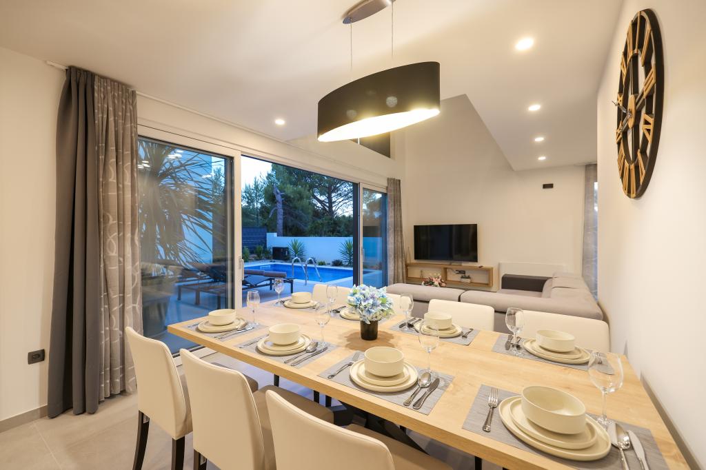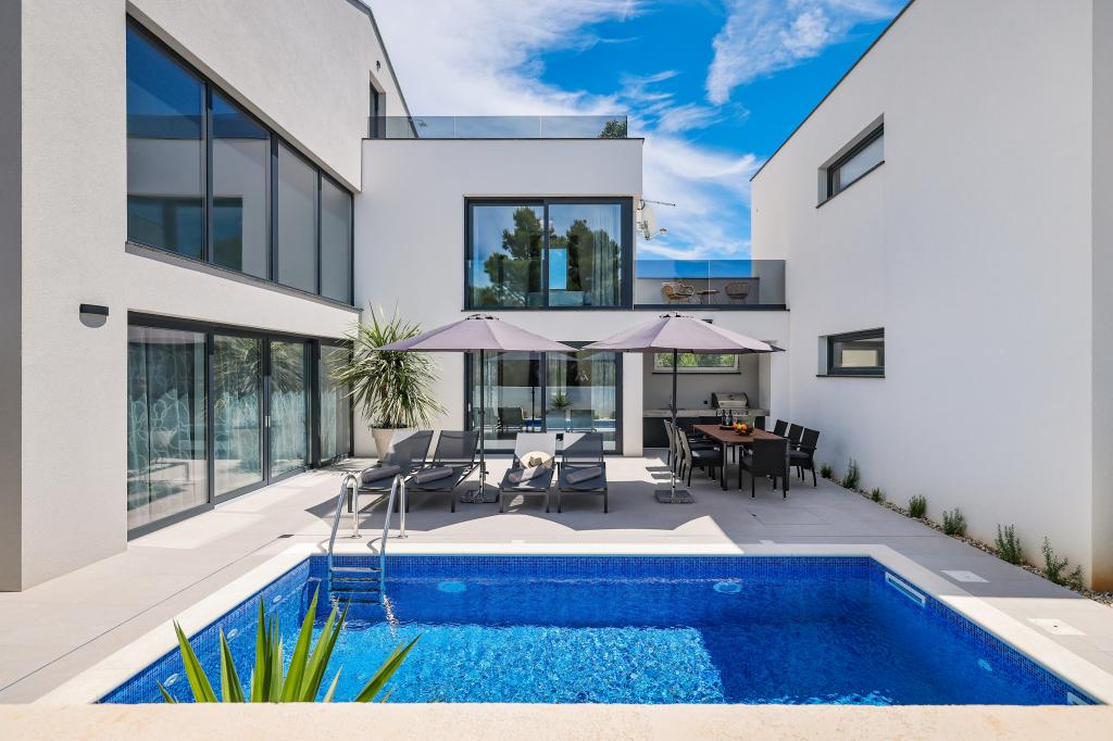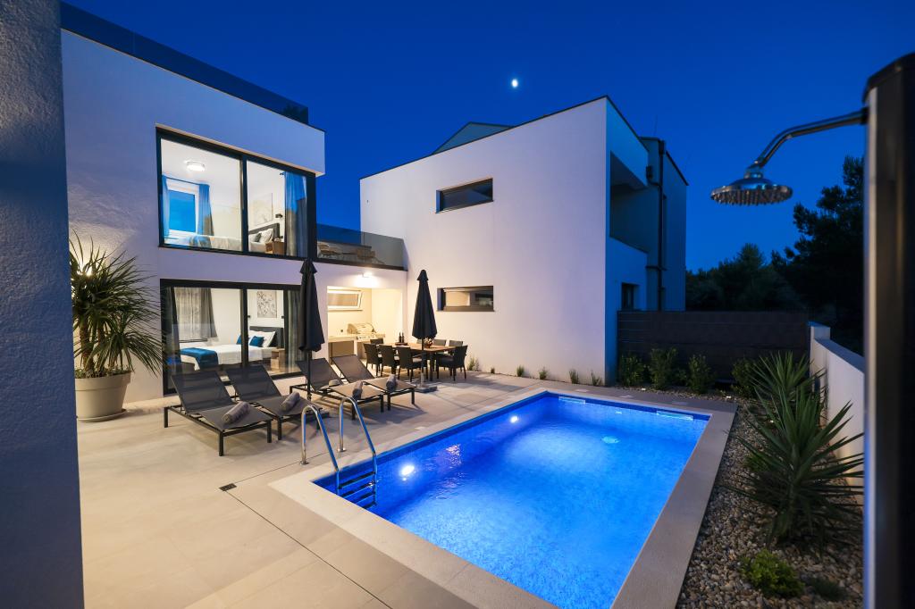 Dobrodošli u Villu Marie, luksuzno utočište s četiri spavaće sobe dizajnirano za opuštanje i udobnost. Svaka spavaća soba ima vlastitu kupaonicu, čime se osigurava privatnost i udobnost za sve goste. Izađite van i otkrijte privatni bazen, savršen za osvježavajuće kupanje pod suncem, zajedno sa saunom i jacuzzijem za vrhunsko opuštanje. Potpuno opremljena kuhinja idealna je za pripremu ukusnih jela, bilo da objedujete u zatvorenom prostoru ili na prostranoj vanjskoj terasi. Smještena u šarmantnom obalnom gradiću, Villa Marie nudi savršen spoj tišine i modernih pogodnosti, što je čini idealnim mjestom za bijeg za obitelji ili grupe koje traže nezaboravan bijeg uz more.