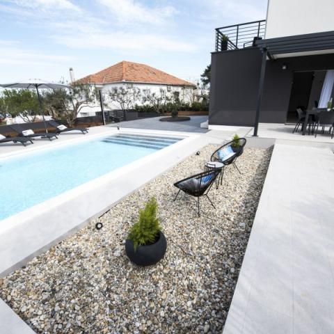 Novoizgrađena vila ROSSA u mjestu Ždrelac na otoku Pašmanu. Udaljena od mora 10 m. Modernog uređenja, koja se sastoji od dvije smještajne jedinice za max. 8 osoba. Opremljena svim potrebnim aparatima. Objekt ima bazen 8x4metara. Vanjski zidani grill s garniturom za sjedenje. . U zasebnoj prostoriji se nalaze perilica i susilica. Villa ima 3 spavace sobe svaka sa svojom kupaonicom. 2 zasebna wc-a. 2 kuhinje. Prostrane terase s pogledom na more. Osiguran parking za 4 vozila.